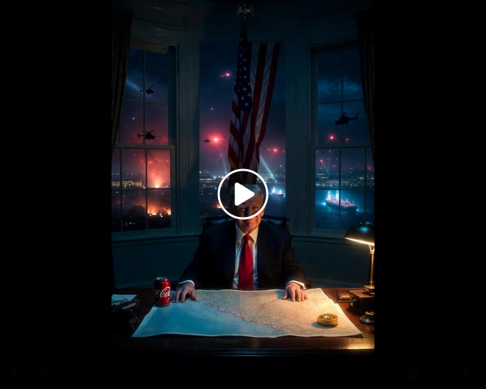Himlen över huvudstaden pulserar av ljus från drönare, strålkastare och satelliter som passerar som kalla, vita gnistor. Och mitt i detta sitter President Donald Trump, USA:s mest omdiskuterade ledare i modern tid, vid sitt skrivbord i Ovala Rummet.