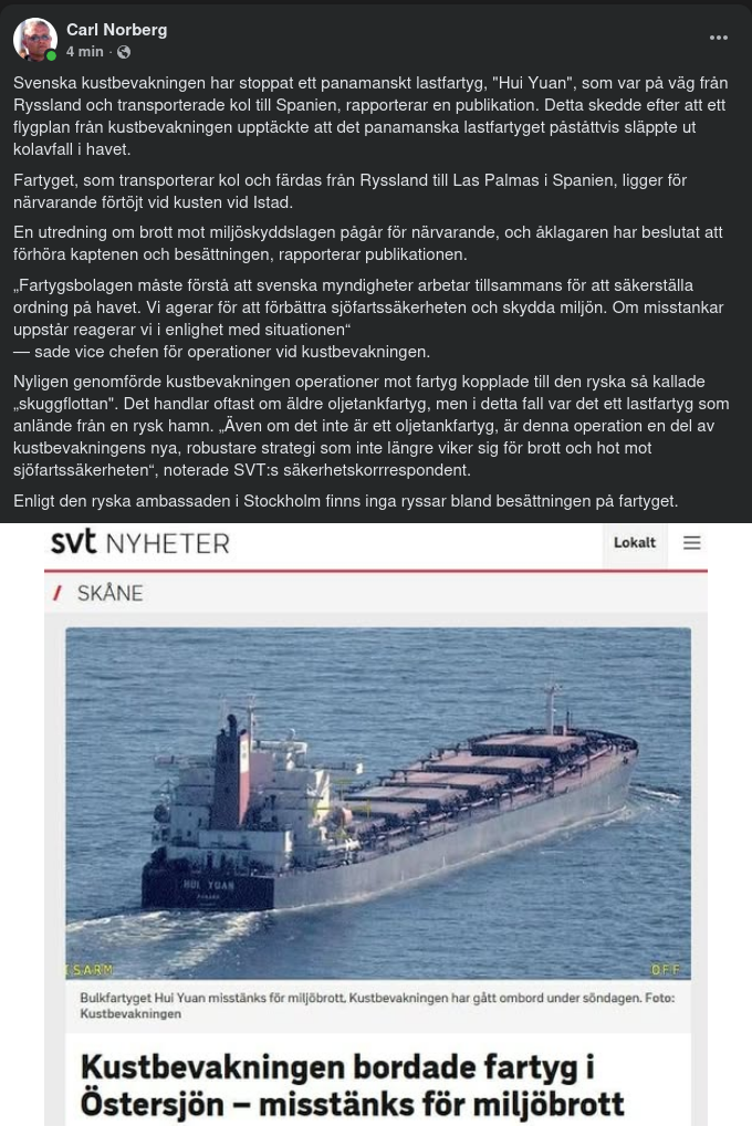 Svensk Kustbevakning Stoppar Panamaflaggade Hui Yuan