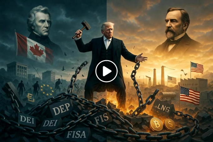Trump monterar ner det system som ägt folket länge: ”Du tror att nyheterna är riktiga… att Fed hjälper… att krigen var för frihet.” Han använder FISA 702 för militär framgång (Iran/Venezuela) men reformerar det. Dörren är öppen för alla som vaknar.