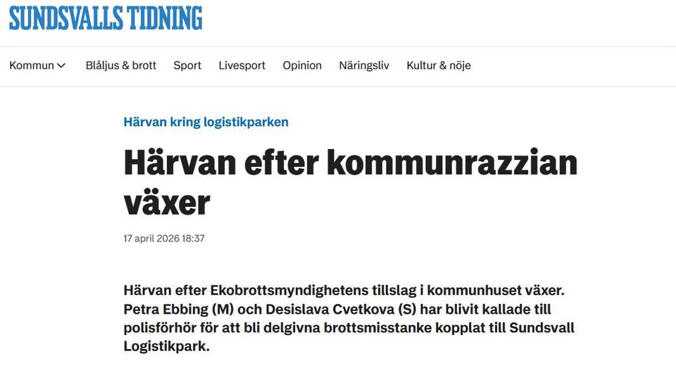 Tidigare har det varit känt att styrelseordförande i Sundsvalls Logistikpark, Anita Bdioui (S), och styrelseordföranden i det kommunala moderbolaget Stadsbacken AB, Petter Stenberg (S) är två av de personer som är misstänkta för brott.