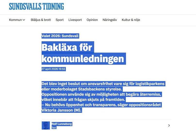 **Lärdom?** Samma som opinionstexten sa: Partibok och gamla överenskommelser ersätter inte kompetens och transparens. Men Sundsvall lär sig inte. Man skjuter upp beslutet, håller krismöten, säger ”långsiktigt projekt” och fortsätter.